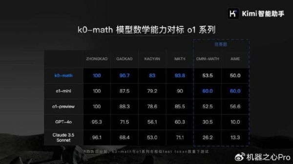 在多项基准能力测试中,k0-math 的数学能力可对标 OpenAI o1 系列公开发布的两个模型:o1-mini 和 o1-preview。