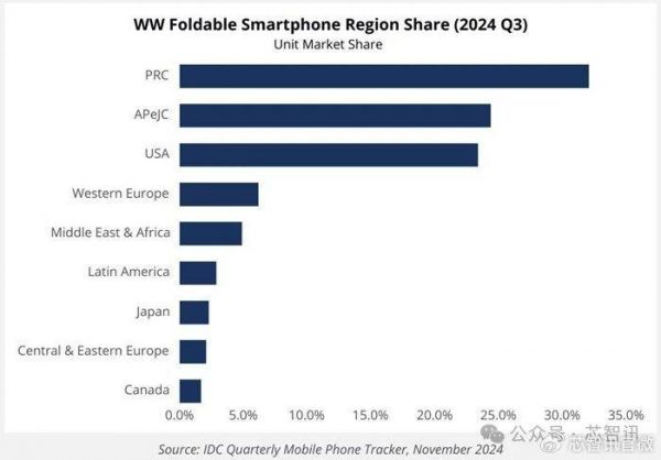 仅从今年三季度来看,中国可折叠手机市场占有率为32%,紧随其后亚太地区市占率约为26%,而美国地区的市占率为24%。