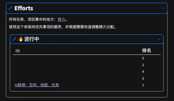 对个人来说也是一样。每天的任务、计划和执行,都是努力的体现。在Efforts文件夹里,我会存放各种任务和项目,用它来记录和管理我的行动和进展。