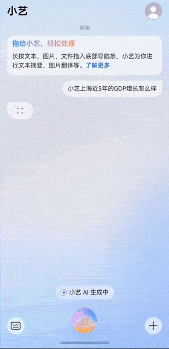 如果对小艺提问“上海近5年的GDP发展趋势”,小艺不仅会引用国家统计局的数据,还能给出图文并茂的趋势图,更加方便用户阅读理解。