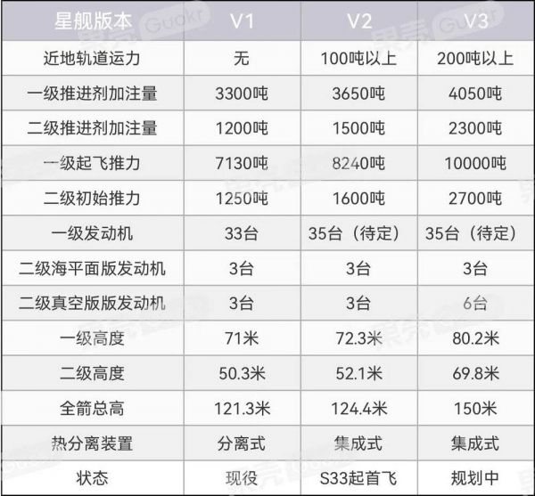 星舰各版本数据对比|数据来源:SpaceX