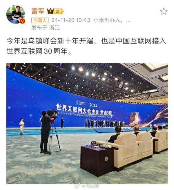 雷军现身世界互联网大会乌镇峰会,周鸿祎点赞雷军:行业里三十年的劳模,厚积薄发!