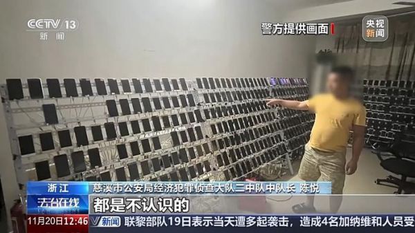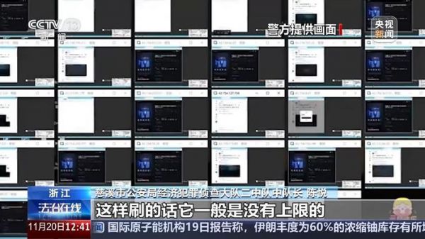 慈溪市公安局网络警察大队副大队长陈威晔:我们在江西赣州一个比较破旧的民房里面很隐蔽的地方,找到了工作室,走到房间的时候,我们进去以后就发现房间里大概有600部工作机,有一部分还在进行一个上人气的操作。