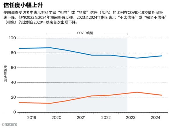 本文来自微信公众号:自然系列 (ID:nature-portfolio),作者:Alix Soliman,翻译:施普林格·自然上海办公室,原文以US trust in scientists plunged during the pandemic—but it’s starting to recover标题发表在2024年11月14日《自然》的新闻版块上©nature,Doi:10.1038/d41586-024-03723-5