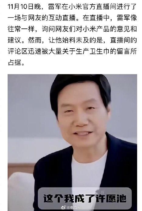 网友喊话雷军生产卫生巾?小米高管回应:我们短期应该是不做的
