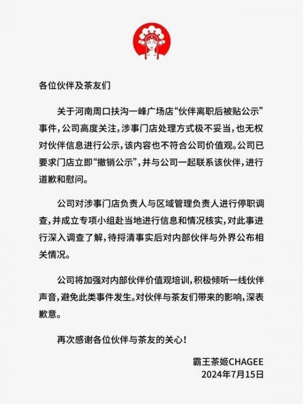 霸王茶姬的招商部门在上述风波中对外表示,总部确实会有针对门店服务质量的考评,也会设定奖金来奖励服务质量高的门店,但不会强制要求门店大量删除差评。不过也有前员工发文称,霸王茶姬的全国门店会进行排名分级,出现差评不是直接扣钱而是影响评级,末位就会有惩罚机制。