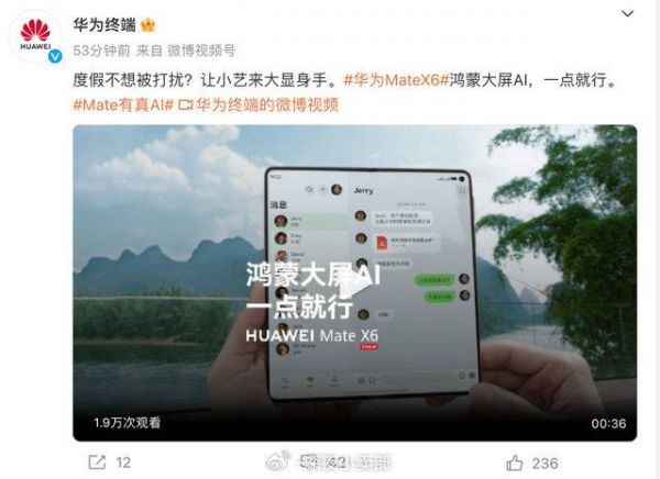 华为Mate X6或首发原生鸿蒙系统,带来多项大屏AI体验升级