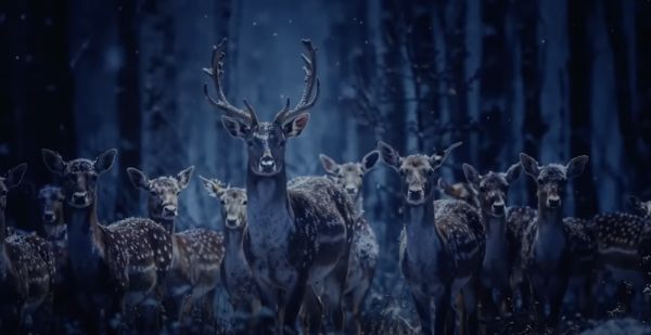 广告里出现了大量动物,鸭、狗、老鼠、猴、猫、兔子、驯鹿、北极熊……所有的动物都像会动的标本,哪怕画面里做出了景深,但也挡不住那差之毫厘的“不真实感”,更别提还有四个北极熊端坐在洞穴里看可口可乐,十几只驯鹿在黑暗森林里盯着你看,表面光滑的鸭子成群结队过马路……