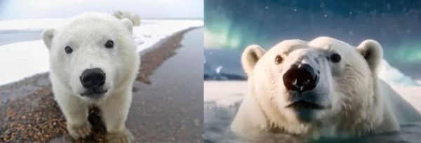 左:真实北极熊右:可口可乐AI北极熊|图源:作者自制