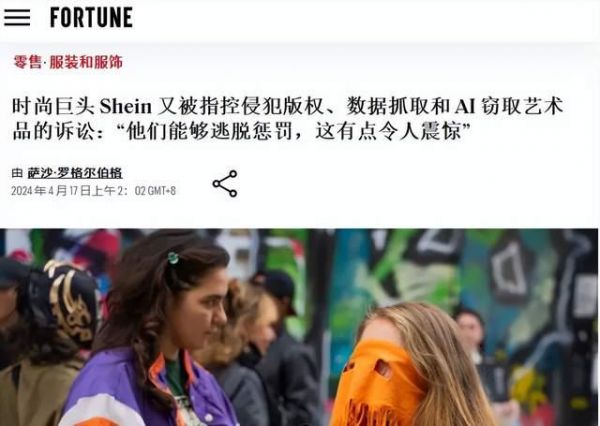 2024上半年,FORTUNE、FASHINON DIVE等媒体曾先后报道过,SHEIN被指频繁侵犯版权,利用AI、爬虫等技术盗窃侵权艺术品,很多媒体都为SHEIN长期以来未被有效监管而大感震惊。