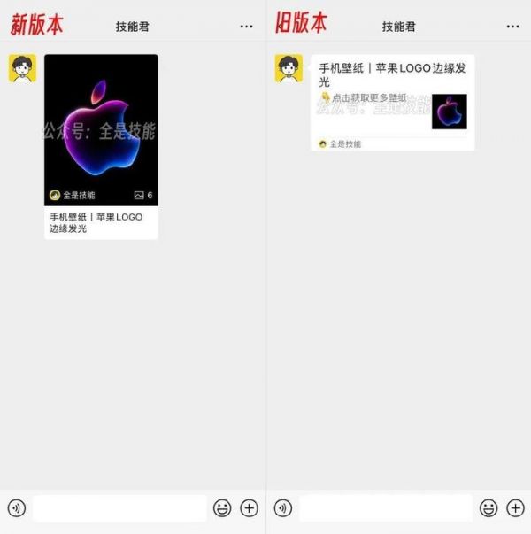 首先,用户转发图片消息(即“小绿书”)至聊天或朋友圈时,显示界面由原先的“小卡片”改为“大图”。