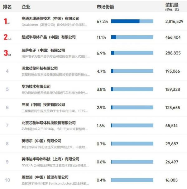 2024年前三季度中国市场座舱域控芯片品牌市场份额排行 来源:盖世汽车