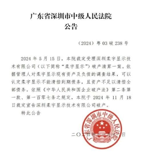 柔宇被法院裁定宣告破产,曾一度估值60亿美元