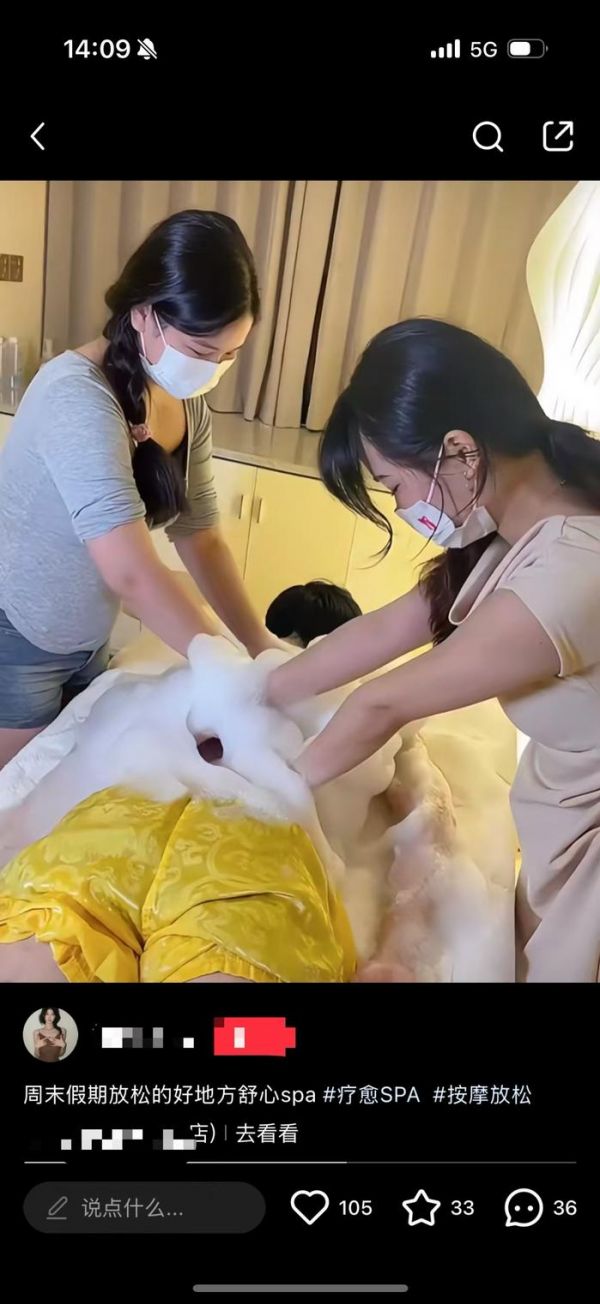 图1是“正常的按摩”画面,两位女生给一位裸露男士“疗愈”,这是一个SPA按摩广告,懂的都懂: