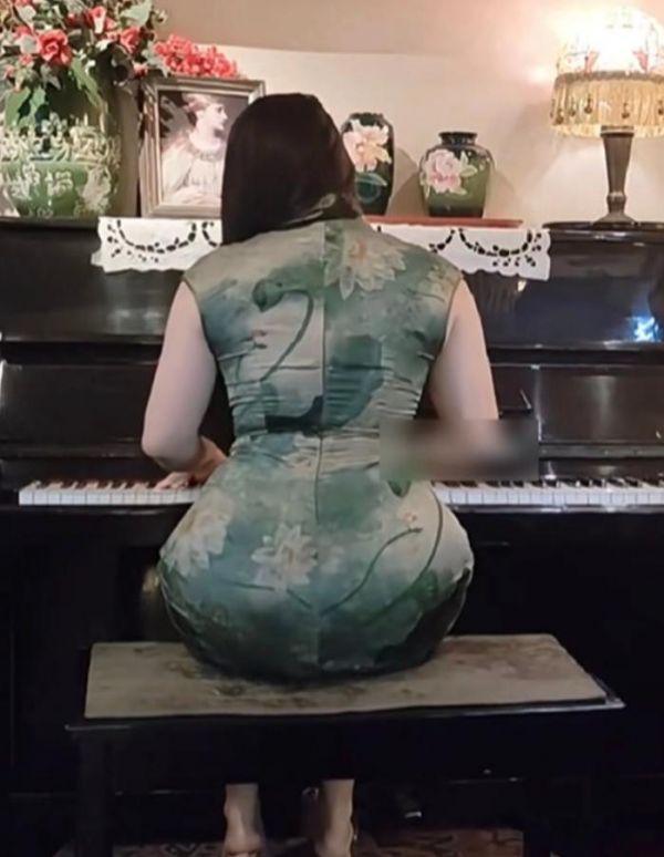 图2是“正常的才艺表演”画面,一位女士背对着镜头弹钢琴,声音来自BGM而非钢琴: