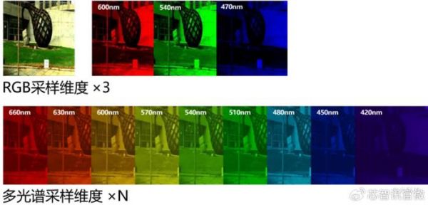 随后华为的P50 Pocket还首次采用了超光谱超级影像单元,拥有10通道多光谱传感器。而此次Mate 70系列的搭载的红枫原色摄像头则是首次将多光谱成像技术应用于手机的拍照,其通道数达到了惊人的150万个,这也使得其能够采集更多光和颜色的有效信息,从而实现成像。而常规的图像传感器只有RGB三个颜色通道,即只有红、绿、蓝三波段的光谱分辨能力。