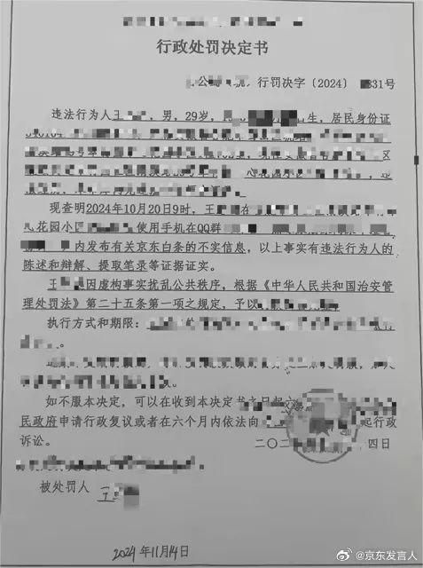 京东:发帖造谣“刘姓商人涉嫌违法被抓”的违法人员已被行政拘留