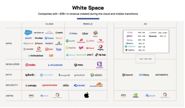 我们可以看出,硅谷风险投资机构对消费级AI应用的机会共识正在形成,投资关注逐渐从基础模型研发逐渐转向应用层创新,各大投资者都在寻找能够直接产生经济效益的商业模式。