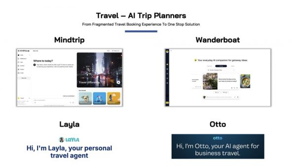 事实上,ChatGPT刚出现的时候就出现过不少AI 旅行计划的应⽤,但⼤部分失败了,只有少数的⼏家公司持续获得融资。但到今年下半年,该赛道逐渐出现VC背景的创业公司,其商业模式也逐渐成熟。
