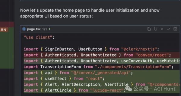 Cursor 不仅在代码实现上强大,它还能通过给定文档自动生成一整套实现方案。以用户管理系统为例,用户通过提供 Convex 与 Clerk 文档后,Cursor 可以自动生成从用户认证到配额管理的完整流程,包括以下细节:
