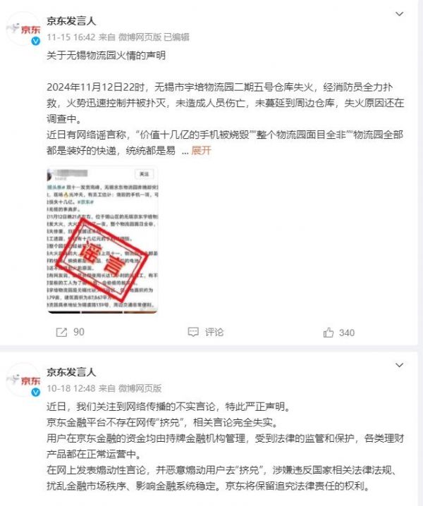 京东发言人称,公司近期以来在网络社交平台上遭受连续造谣攻击,一段时间以来,网络造谣者通过编造一些抓眼球的虚假内容,发布“京东金融遭挤兑”、“京东白条虚假征信”、“京东被国际神秘组织ESG渗透”、“京东女性员工占比超过90%,已被极端女权控制”、“京东无锡宇培物流园失火中价值十几亿的手机被烧毁”等话题,有组织、有蓄谋地对京东和京东创始人及家人进行舆论攻击。