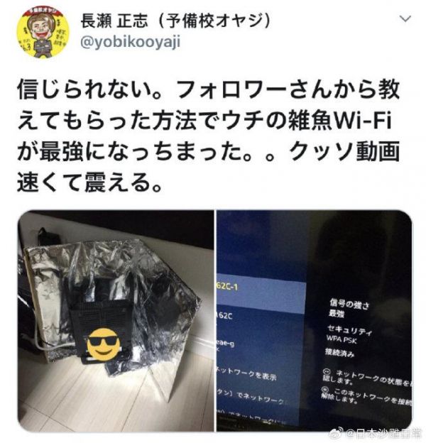 岛国网友发现,用铝箔纸反射信号,可以让原本烂得一比的wifi强到令人感动