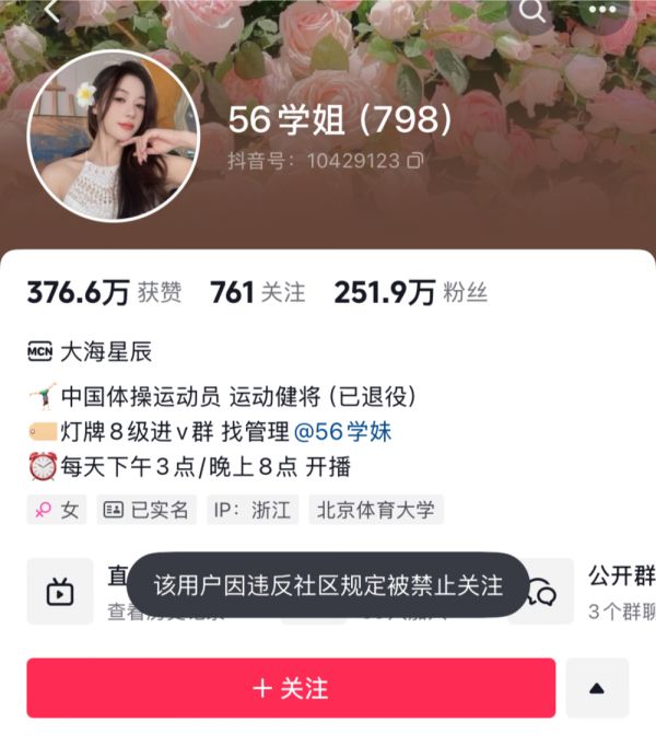 起因是,吴柳芳在发布性感跳舞视频的同时,也在简介里写着自己是中国体操队员,并置顶了一个身穿体操服躺在奖牌上的视频。