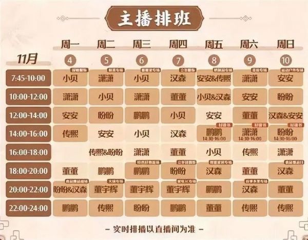 与此同时,董宇辉开播露面的次数正在减少。与辉同行公布的直播排班表显示,11月4日至11月10日期间,董宇辉仅有3次直播,其余时间均由其他主播担纲。