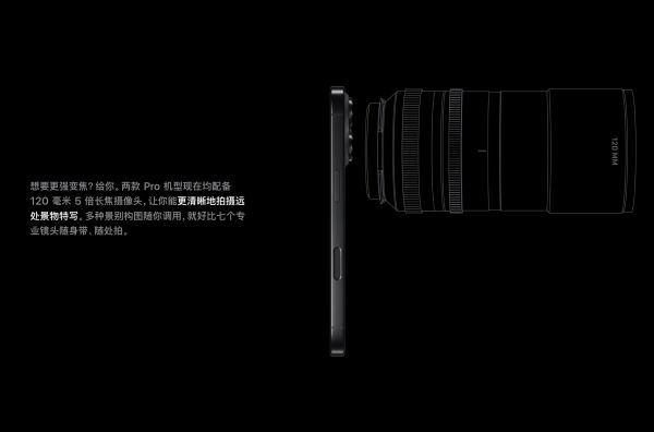 苹果在iPhone 11系列中就首次带来了“长焦”镜头的设计,其等效焦距为52mm,放大倍数为2。到了iPhone 13 Pro,苹果将这颗长焦镜头更换为等效焦距为72mm的长焦镜头,放大倍数为3。在iPhone 15 Pro Max上,这颗长焦镜头再次升级为120mm焦段镜头,放大倍数为5。