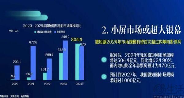 更何况短剧的体量小并不代表吸金能力就差,用户充值流水过亿如今已是爆款短剧的基本条件。在《中国微短剧行业发展白皮书〔2024〕》中就显示,2024年我国微短剧市场规模将达到504.4亿元、超越内地电影票房的规模,预计到2027年,微短剧市场的规模或将超过1000亿元。