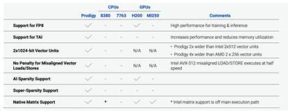 Prodigy各型号的规格(来源:Tachyum)Prodigy的竞争卖点在哪里呢?据该公司白皮书的分析,其统一架构通用处理器直接与CPU和GPGPU竞争。