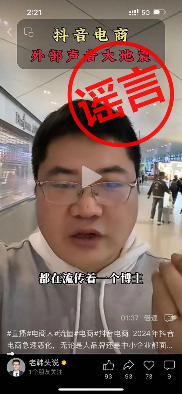 今日,抖音集团副总裁李亮在社交媒体发文表示,有自媒体账号发布消息称“抖音电商去年GMV为2万多亿元,而广告收入高达4000亿元”。该内容与事实严重不符,该谣言被名创优品创始人叶国富先生引用后(了解事实后叶先生删除了朋友圈),引发部分媒体不实报道。