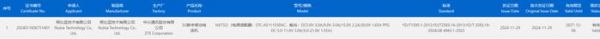 认证信息显示,这款新机的申请人和制造商均为努比亚技术有限公司,生产厂为中兴通讯股份有限公司,支持33W快充。