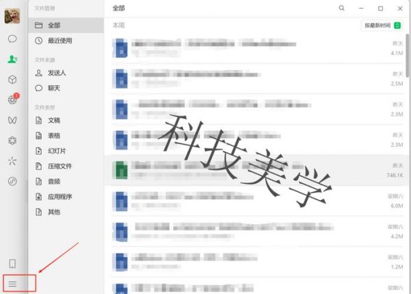 需要注意的是,“聊天文件”的入口挪到了页面左下角。进入到聊天文件界面后,文件的日期、大小、名称、来源等信息均一目了然,这样我们就可以根据文件来源和类型来进行筛选。