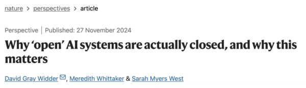 他们通过分析 “open” AI 的当前生态,探讨了其对资源共享、技术创新和市场竞争等的深远影响,同时呼吁对其经济政治背景进行更深入的反思和措施介入。