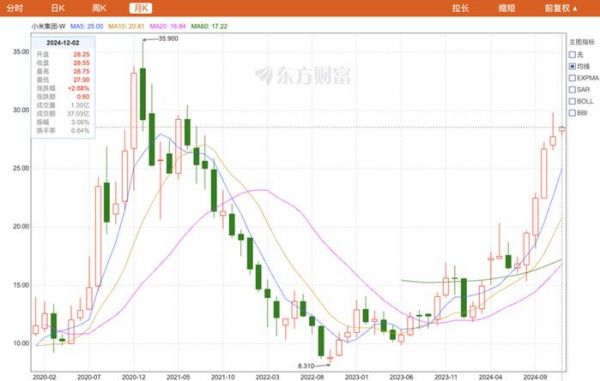 2018 年 7 月 9 日小米在香港上市,雷军称要让当天买股票的人收益翻倍。这件事情,小米在 2021 年做到过,1 月 4 日,当天最高价来到了 35.9 港元。但此后一年时间里,其股价最低跌至发行价腰斩。