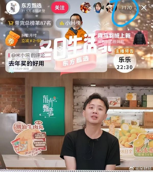 在市场传出孙东旭回归东方甄选直播间过后,11月28日22点19分,花朵财经观察到,东方甄选主账号在线直播观看人数只有几千人,相比与辉同行10万+的数据,相差甚远。
