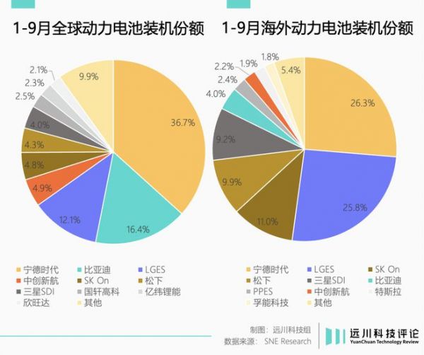 根据SNE Research数据,宁德时代今年1-9月海外装机量反超LG,同期比亚迪、中创新航的增速分别达到1.5倍和4倍。