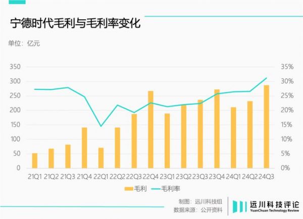 今年三季度,宁德时代营收为922.78亿元,同比下滑了12.48%,但毛利率却同比增长8.8%,达到31.17%。