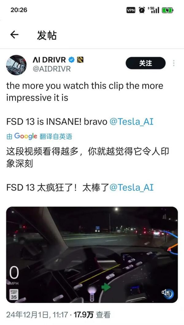 甚至许多留言的X平台网友都开始期待无监管的FSD到来,可见外界因为FSD V13.2的到来,对自动驾驶又有了一些期待。特斯拉的确用几个摄像头和一套HW自动驾驶硬件证明:好的智驾可以不依赖任何雷达。