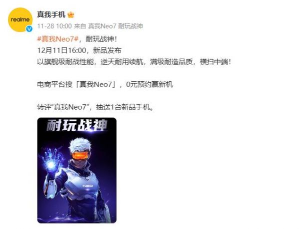 真我Neo7定位耐玩战神,12月11日正式发布