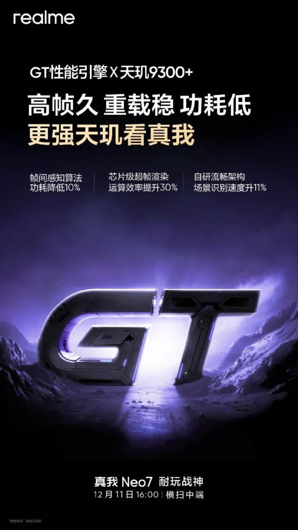 不久前,真我手机官方正式宣布,“耐玩战神”真我Neo7定档12月11日16:00发布,号称“以旗舰级耐战性能,逆天耐用续航,满级耐造品质,横扫中端”。