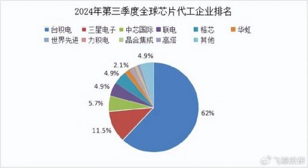 2024年第三季度,三家企业在全球芯片代工企业排名中分别位列第3、6、9名,它们共同占据了全球约7.6%的市场份额。