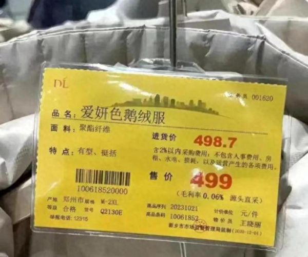 在这场羽绒服市场的“寒冬之战”中,国货品牌的崛起却如同一股暖流,温暖了消费者的心。近日,网友发现胖东来每件羽绒服都标有进货价,甚至一件鹅绒羽绒服的进货价对比售价显示利润仅3毛。胖东来的这一做法,无疑是对消费者的一种真诚回应,也体现了其诚信经营的理念。