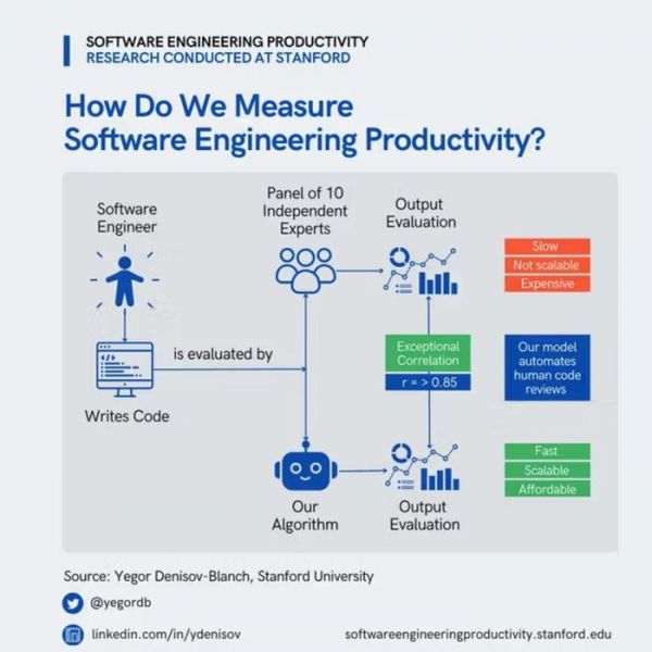 Denisov-Blanch 说,他和他的团队即将发布一篇关于使用大型语言模型(LLMs)来评估开发者生产力的新论文,预计将在几周内发布。拥有 50 名以上工程师的企业可以通过连接他们的 Git 仓库参与这项研究。