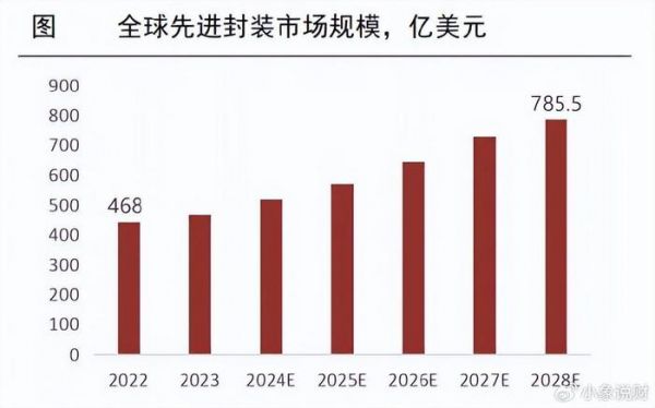 AI及HPC高算力芯片的需求快速增长,带动全球先进封装行业快速发展,2022-2028年市场规模从468亿美元增至785.5亿美元。