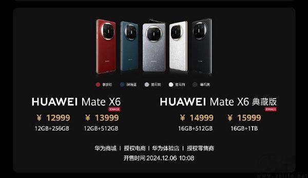 目前,Mate X6在国内市场提供了12GB+ 256GB/512GB两种存储组合版本、起售价为12999元,典藏版也有16GB+512GB/1TB两种选择、价格从14999元起跳。按照以往的惯例,其海外版本的售价大概率将会相比国内有着一定幅度的提升,但至于产品端是否也会有所区别,则还有待官方后续更进一步相关信息的确认。