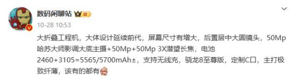 电量快充方面,OPPO Find N5将采用双电芯设计,总容量为5565至5700毫安时之间,支持无线充电功能。