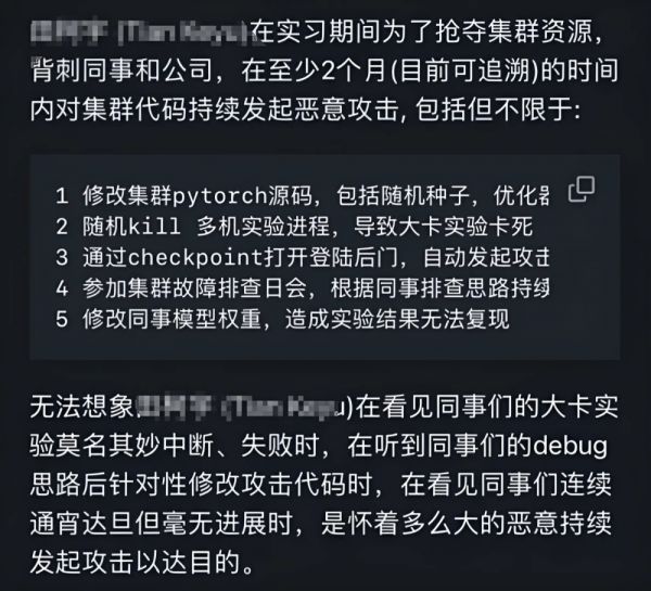 一位在GitHub上发声的知情人士描绘了这场持续两个月的“数字破坏”:“在这段时间里,他系统性地破坏集群代码,直接导致近30位同事的工作成果付诸东流,整整一个季度的心血化为乌有。所有的日志记录和系统审查都指向一个不容辩驳的事实。”