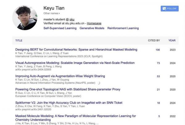田柯宇的学术履历堪称完美:本科毕业于北京航空航天大学软件学院,随后进入北京大学攻读研究生,师从知名学者王立威教授。